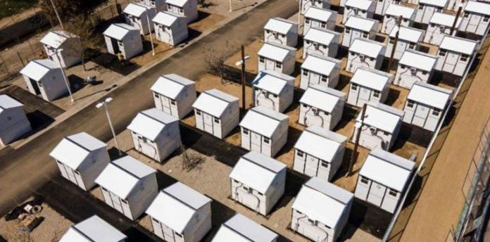 En el barrio de Tarzana se levantaron 76 casitas pagadas por el gobierno local. Cada una tiene 6m2 y está equipada con dos camas y estantes, así como aire acondicionado y calefacción.