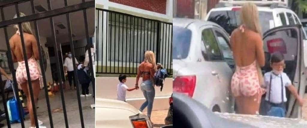 Su atuendo llamó la atención y causó el rechazo de otra madre, que le sacó una foto y un video y los compartió en las redes sociales asegurando que la vestimenta es inapropiada para el lugar en el que se encontraba: